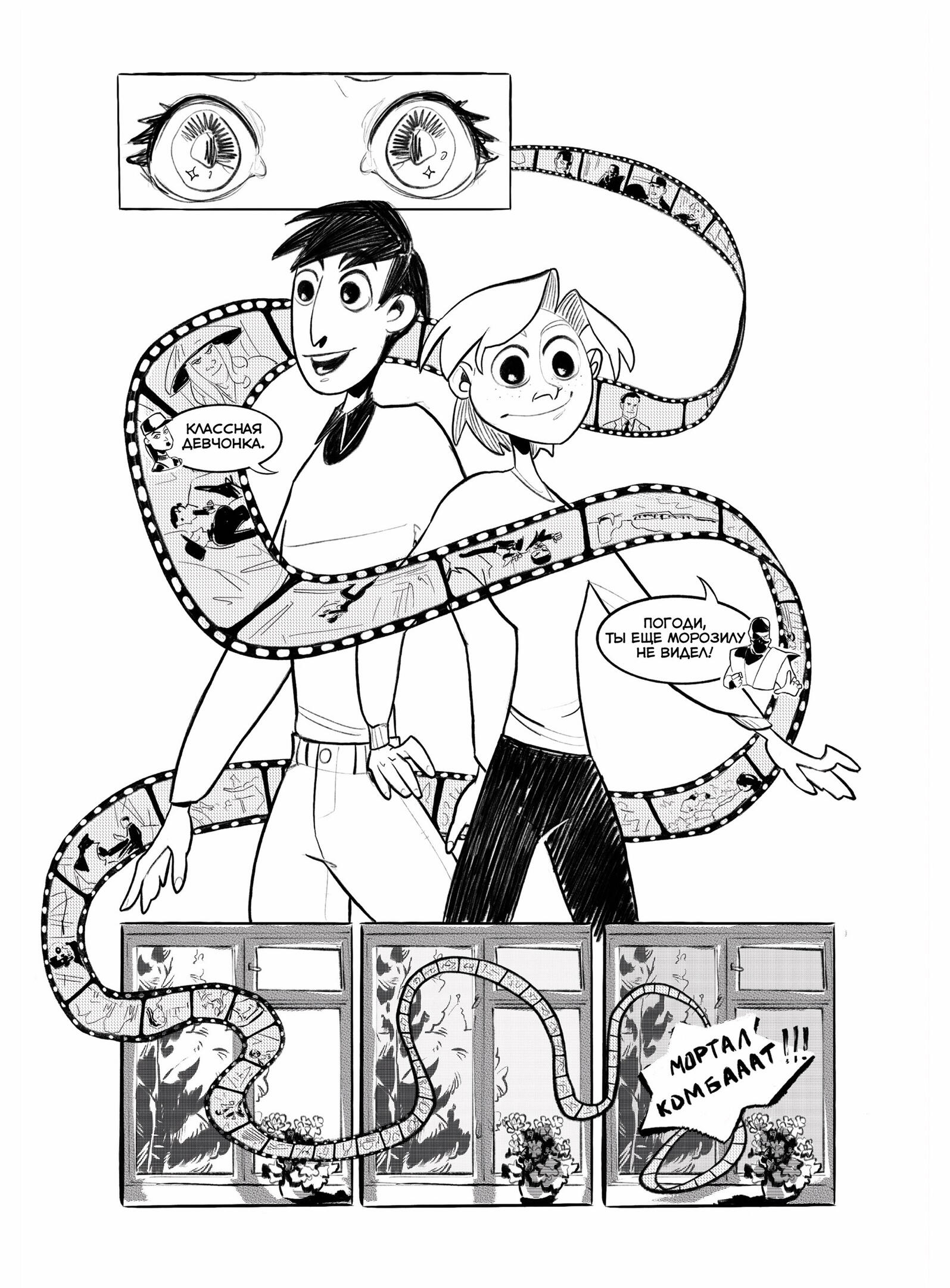 Scene contains more detailed background and more complicated character poses.