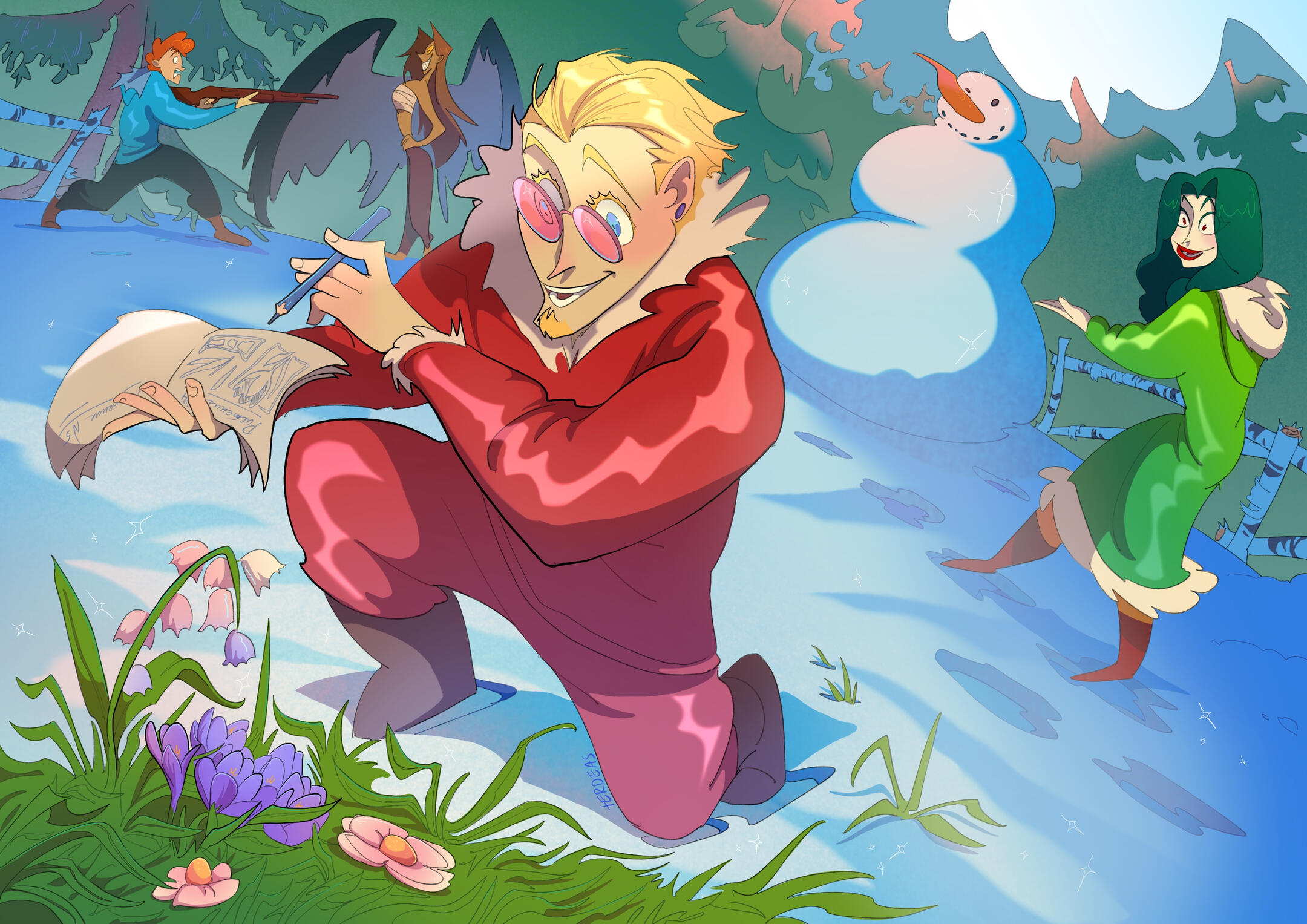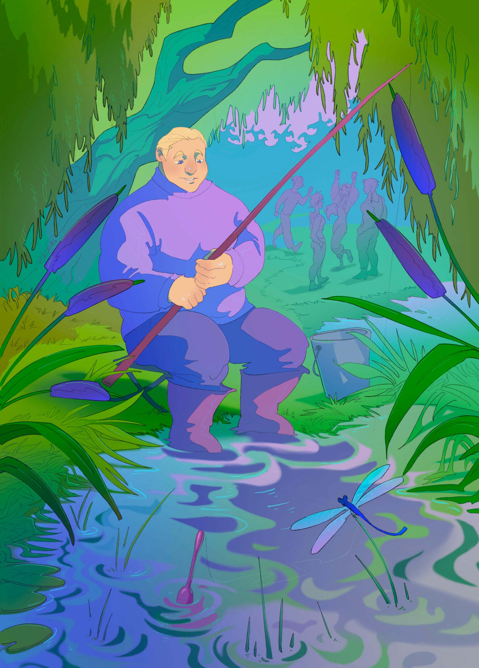 Rough lineart, colors and shades.